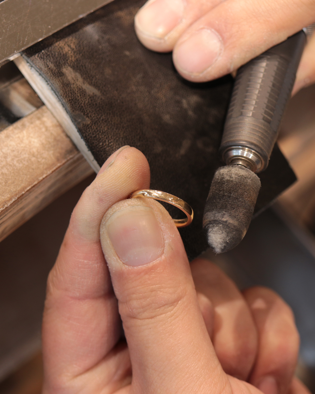 At MITUBACI, a metal carving studio in Sangenjaya, we recently had a customer who had a ring made 12 years ago come in to have it resized from a size 5.5 to a size 7.5. We believe that re-sizing is not just a repair, but an important ceremony to breathe life back into a ring.