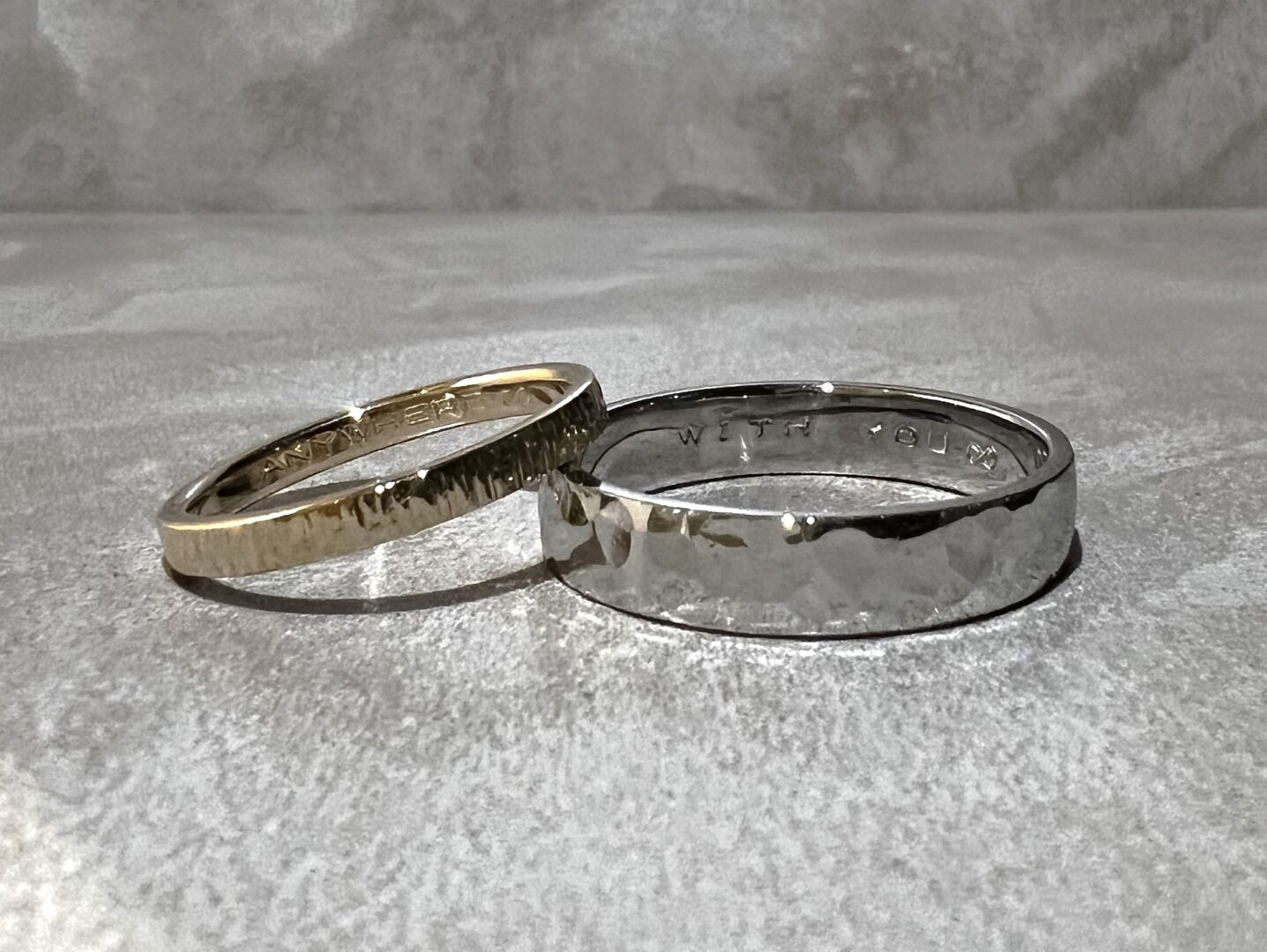 - An "exchange session" in which the participants hit each other's rings:About half of the couples who visit MITUBACI exchange rings and engrave each other's rings. The couple feels a pleasant sense of tension, knowing that they cannot let their partner's ring fail. The time spent putting all one's heart and soul into each stroke is a moment of deep bonding that is different from the exchange of rings at a wedding.