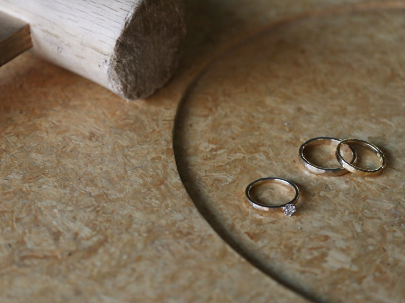 También es importante recordar que existen dos tipos de anillos de metal: los anillos forjados y los anillos fundidos. La forja se lee como "tanzo" y es un proceso que se practica tradicionalmente en el mundo de la herrería. Se prepara un trozo de metal que luego se golpea o se estira para acercarlo a la forma deseada. Se utiliza a menudo para fabricar anillos de boda a mano y es fácil que sean resistentes, ya que el metal está forjado.