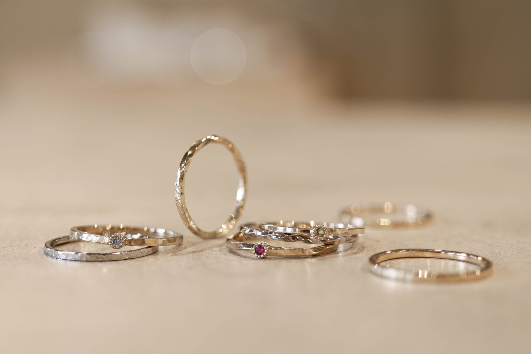 MITUBACI TOKYO의 오리지널 레이어드 링을 수작업으로 만드는 코스입니다. 혼자서도, 커플끼리도 창의력을 발휘하여 즐겁게 제작할 수 있으며, 1.1mm의 얇은 백금과 골드 라인으로 만드는 슬림한 링으로 하나만 겹쳐서 만들어도 즐겁습니다. 취향에 따라 다이아몬드나 탄생석을 세팅할 수 있습니다.
