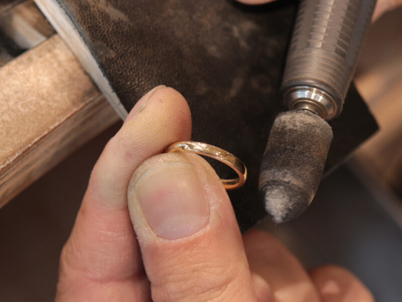 MITUBACI의 공방에는 선반이라는 기계가 있다. 금속을 깎는 가공을 할 수 있는 기계입니다. 이를 당일 현장에서 작업할 수 있는 가게는 많지 않을 텐데, MITUBACI에서는 전문 장인이 그 자리에서 선반을 이용해 가공을 할 수 있다. 물론 당일에 가져갈 수 있다. 반지의 모양이 점점 변해가는 모습을 꼭 한번 보시기 바랍니다.