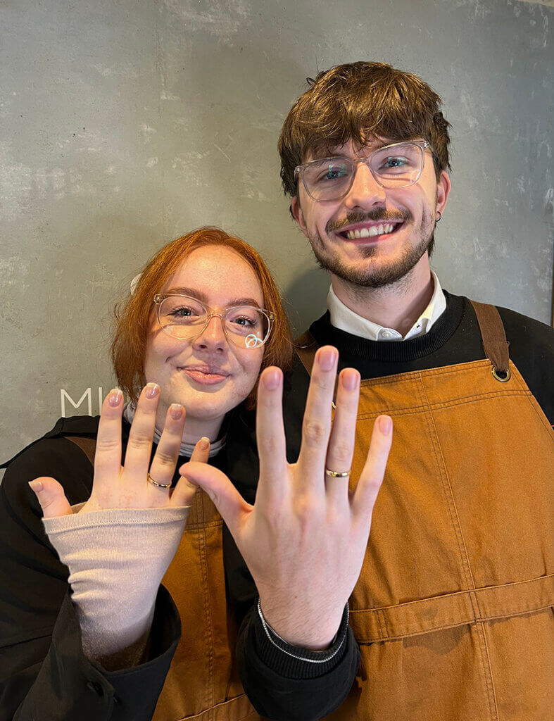 호주에 거주하시는 M님께서 결혼반지를 제작해 주셨기에 소개합니다. ・K18 샴페인 골드(3.5mm) 망치 세팅 + 다이아몬드 ・K18 핑크 골드(2.5mm) 망치 세팅 + 밀링(타원형) + 다이아몬드 여성분은 「2일...