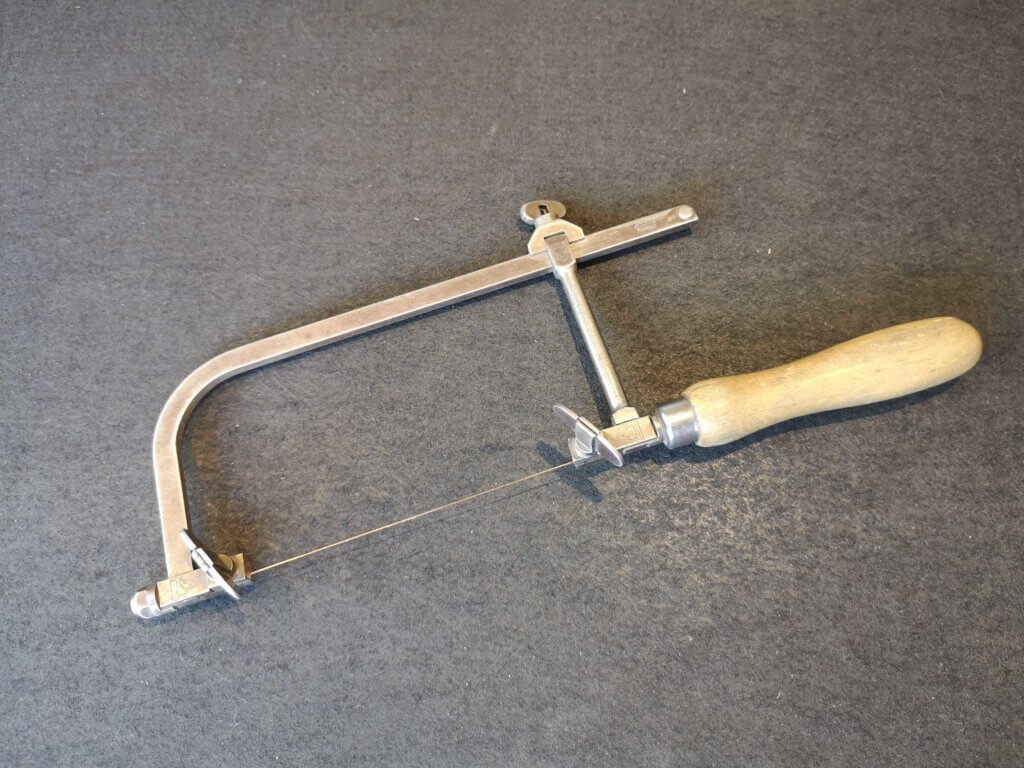 MITUBACI職人の新藤です。 今日はこだわりの「糸ノコフレーム」の紹介です。 糸ノコは、金属の切断に使いますが、時にはヤスリの様に細かな箇所を削ったりするときにも使用します。 普段使う糸ノコ刃は刃の厚さ0.3mmのVallorbe(スイス製)です。 写真の…