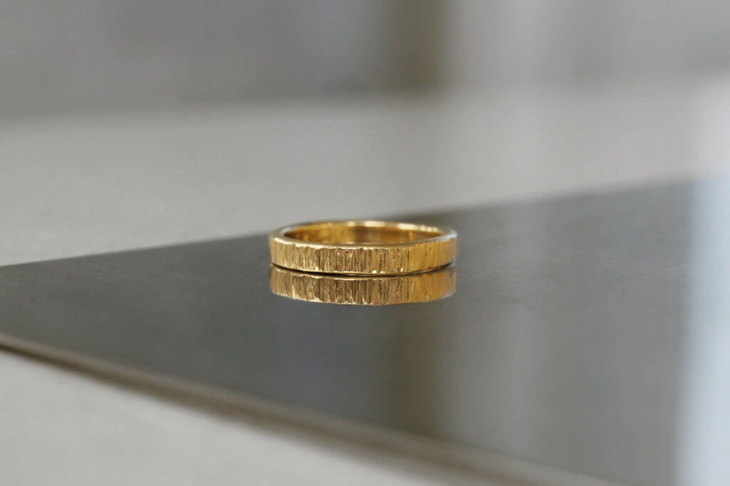 手作り結婚指輪で人気3種類の槌目テクスチャー 槌目とは? 金槌を直接リングやバングルの表面に打ち付けて模様を作っていくテクスチャーを「槌目(つちめ)」とよびます。「槌」というのは金槌(かなづち)の槌です。 手作り結婚指輪の魅力の1つが槌目として知られているテク…