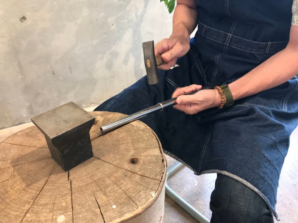 MITUBACI職人の新藤です。 今日はワークショップでも使用している金床(かなどこ)についてお話しします。上面が平らになってる金属の台が金床、金床が刺さっている木の台が木台です。木台の高さは60cmほどあります。 1人で動かすのは大変な重さです。金属をたたい…