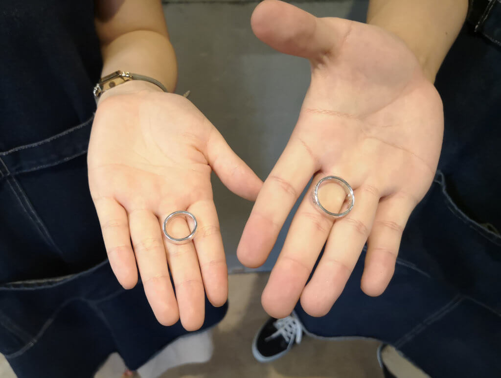 ペアリングのワークショップにいらっしゃったF様をご紹介します。商品として「結婚指輪」とご紹介していますが、記念日のアニバーサリーリングやペアリングとして制作にいらっしゃるお客様もたくさんいらっしゃいます。 <指輪詳細> ・K18シャンパンゴールド(2.5mm幅…
