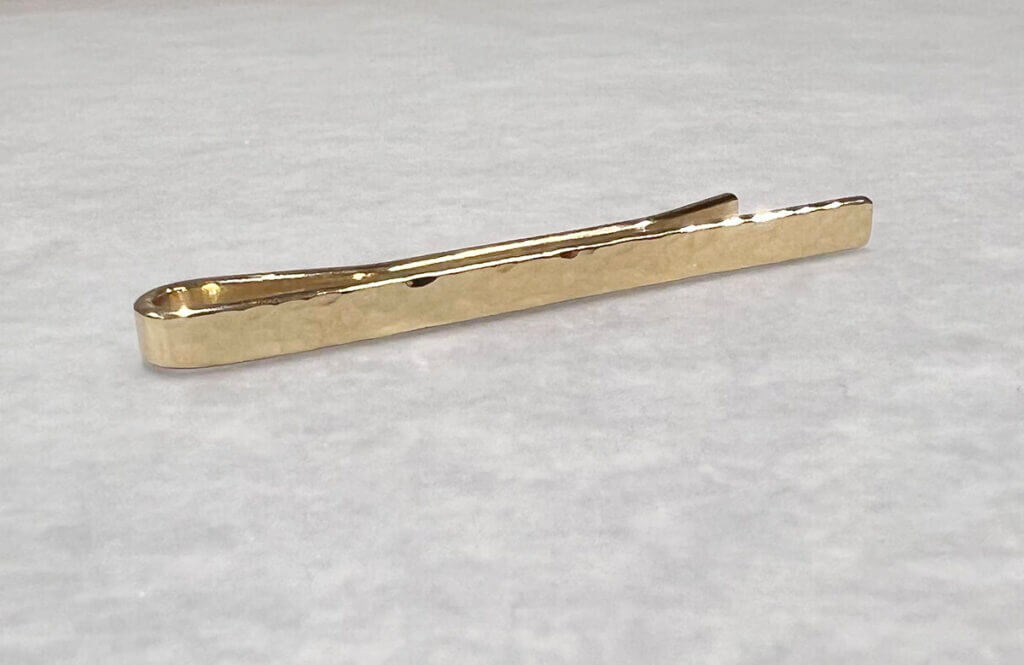 <詳細> シルバータイピン 鎚目 イエローゴールドメッキ 職人へのメッセージをいただきました 記念日に手作りのネクタイピンをプレゼントしたく、来店させていただきました。加工の種類やメッキの色選びなど、とても迷ったのですが、焦らず選ばせていただきました。刻印や磨…