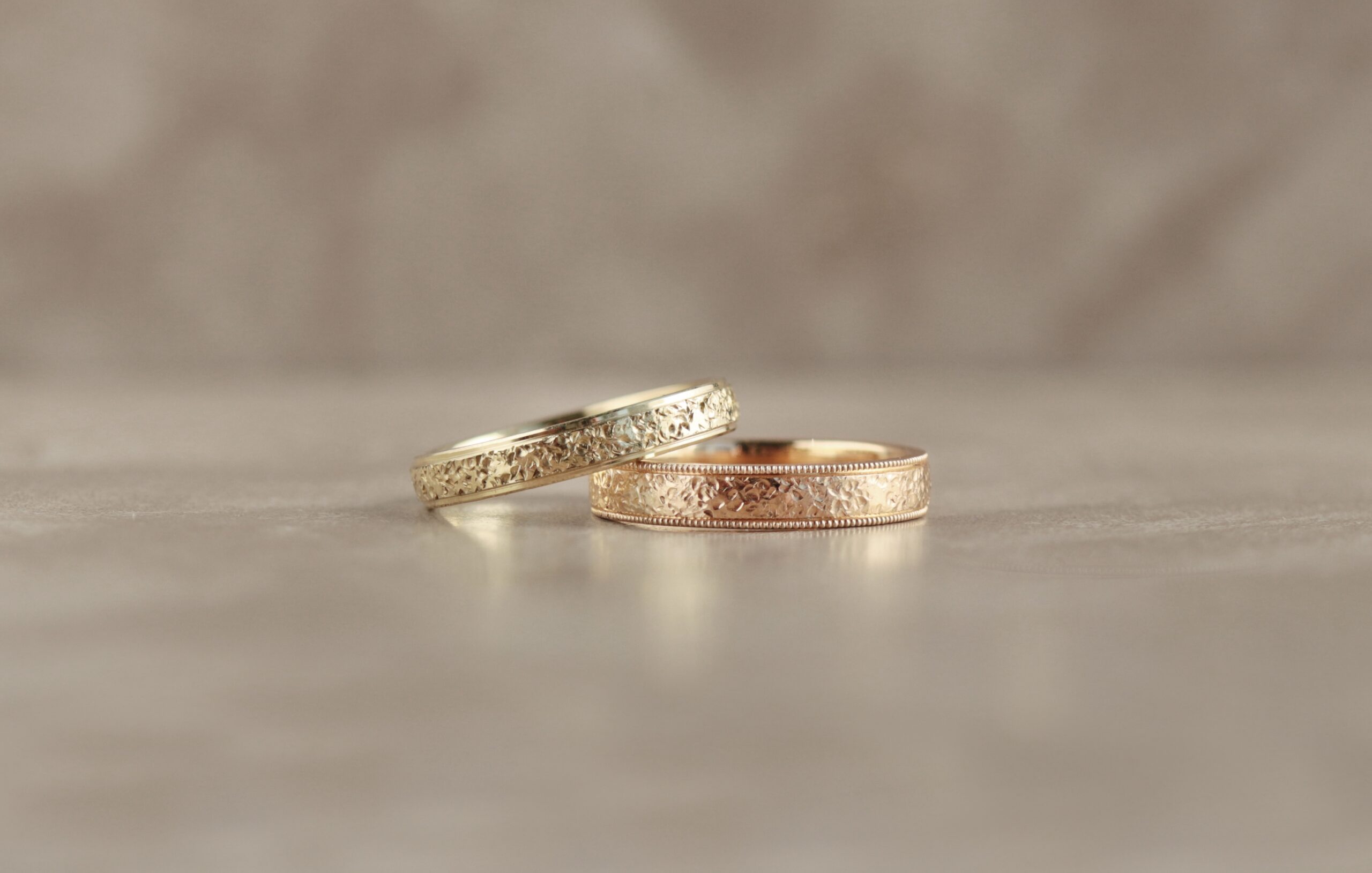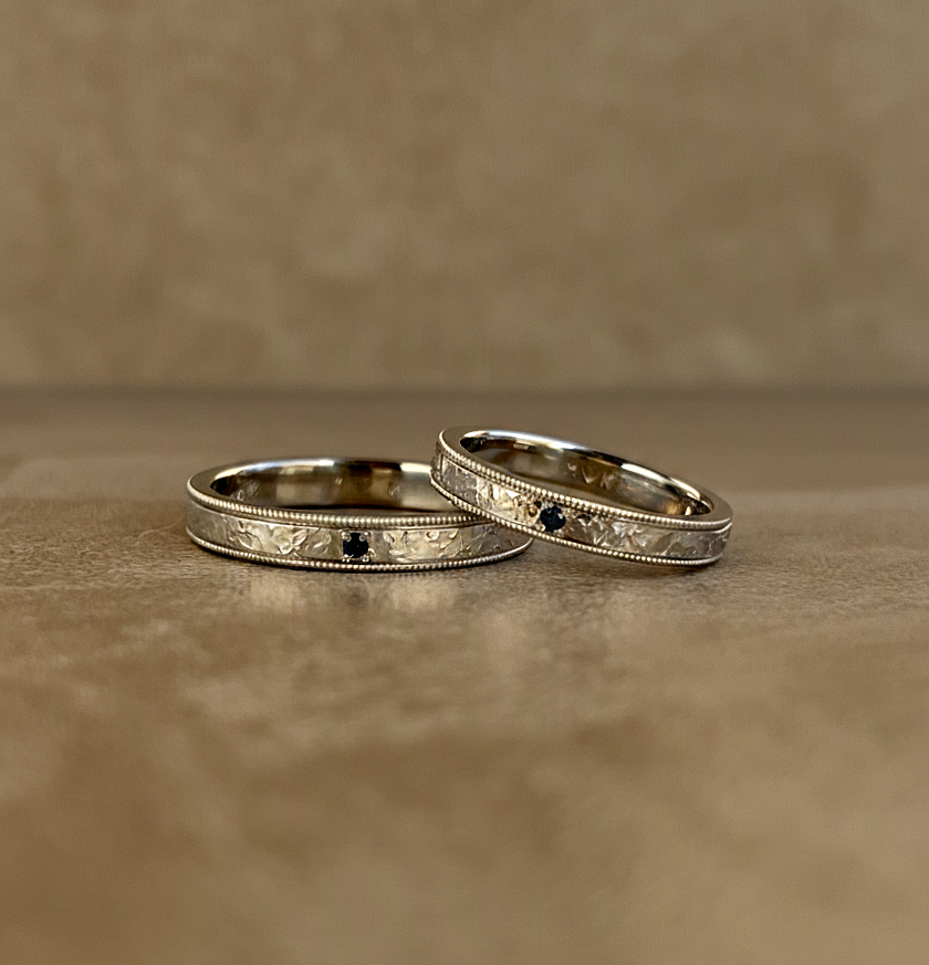 正是基于这种想法,一种新形式的手工戒指诞生了,它将顾客自己雕刻的 "手工质感 "与工匠为其赋予生命的 "精致表面 "融为一体。
